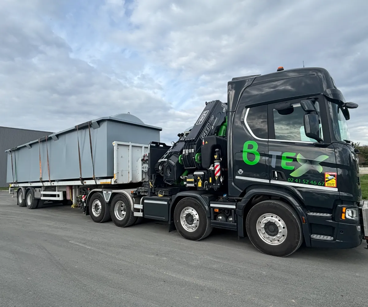 B-TEX Bénéficiez de notre transport camions bras de grue à Neuillé, près de Paris